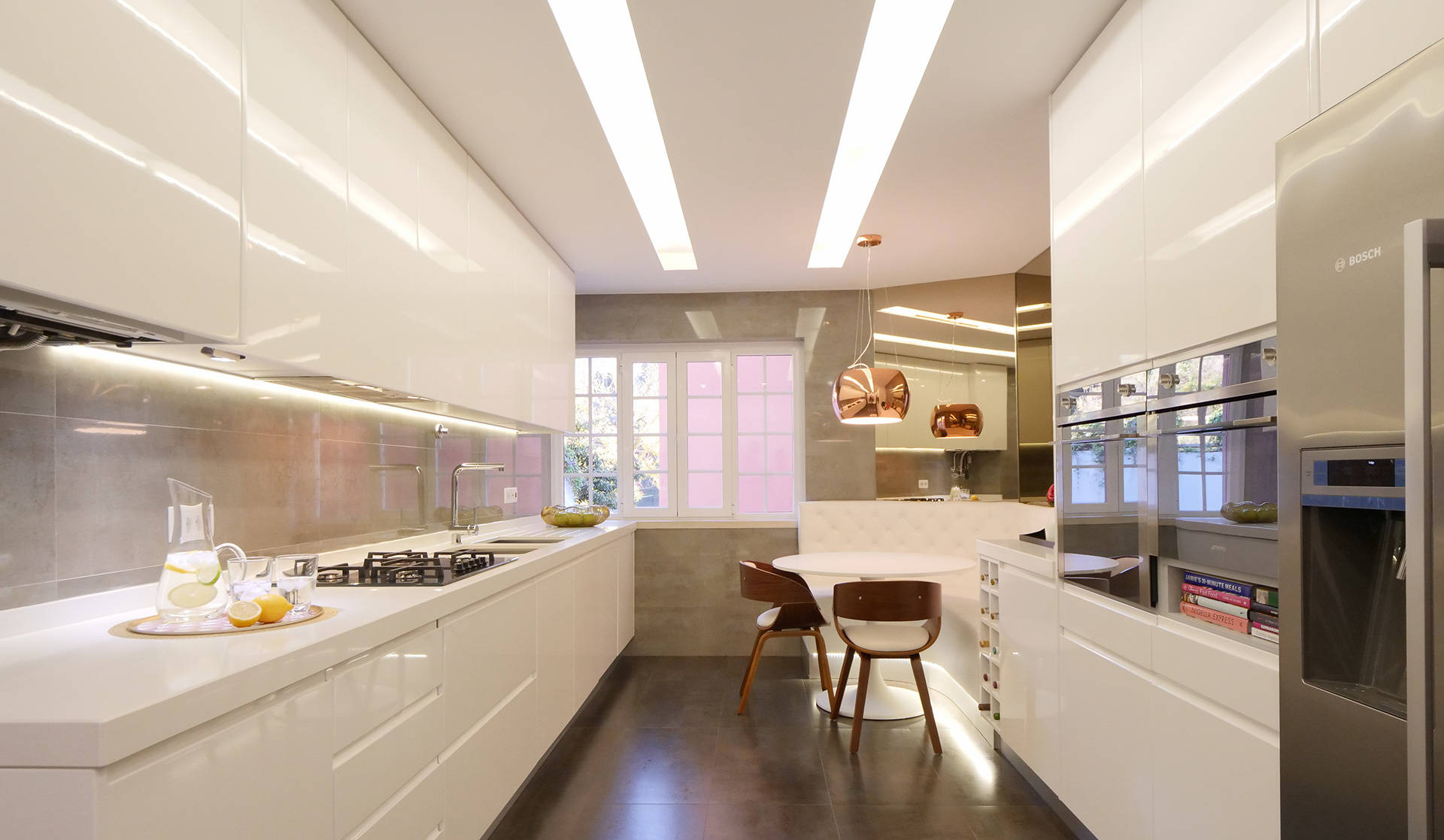 This was an apartment for a family of 6 people. The space was largely gutted and redefined with greater functionality. Increasing the kitchen area and adjusting to 4 bedrooms.